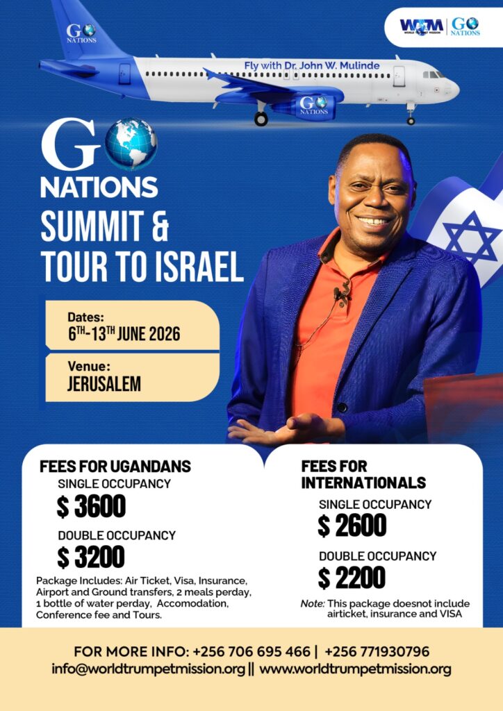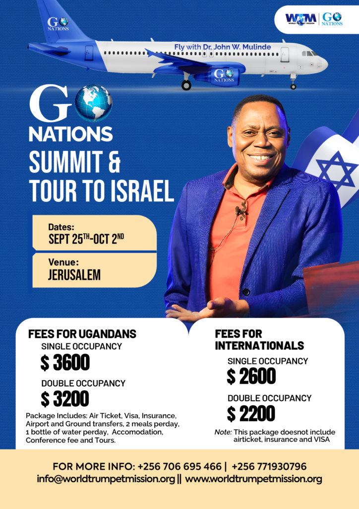 Led by Dr. John W. Mulinde, the summit will focus on God’s heart for the nations, the Great Commission, intercession, repentance, and the role of Israel in God’s end-time purposes. The experience is designed to deepen your understanding of Scripture, ignite a renewed passion for missions, and strengthen your walk with God.